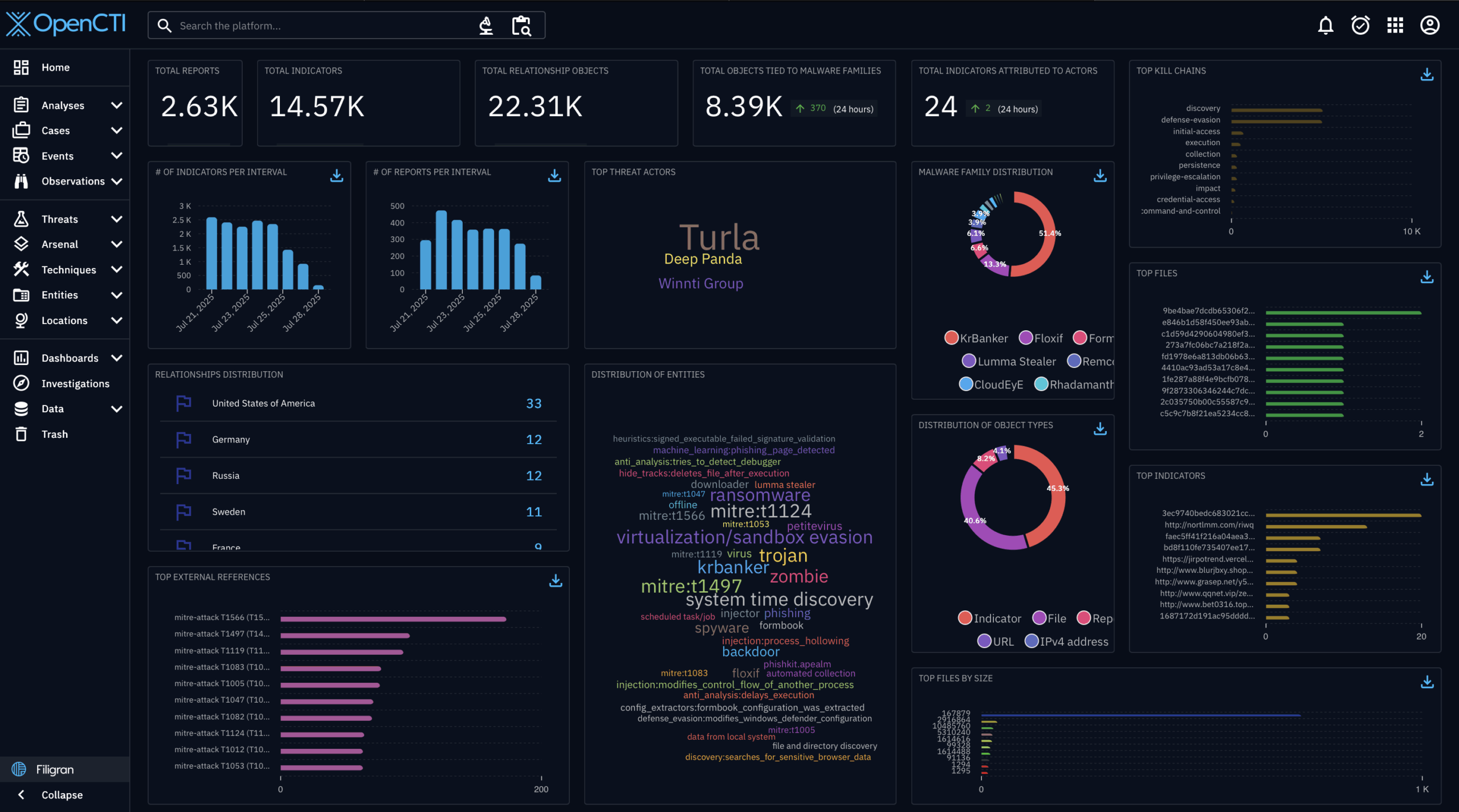 Note for OpenCTI users: OpenCTI customers are eligible for a 60-day free trial of UniqueSignal to replicate the dashboards in your own environment.