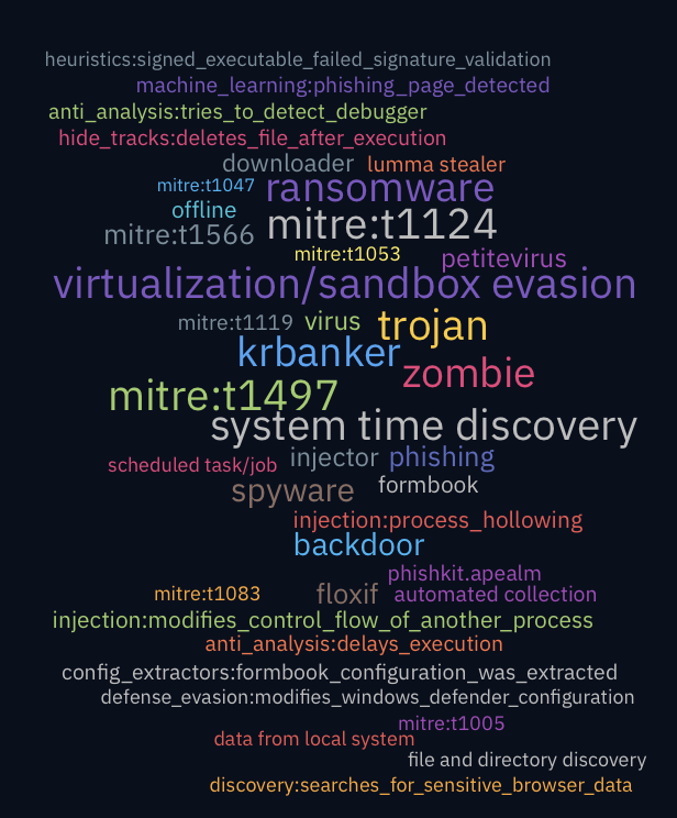 - Monitoring behavioral markers (VMRay Threat Identifiers – VTIs) to see most observed evasion techniques